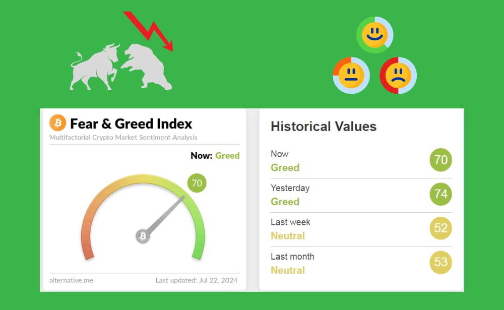 Крипто зах зээл дэх тоглогчдын сэтгэл зүйн байдлыг хэмжвэл өнөөдрийн байдлаар Айдас ба шуналын индекс 70 (Шунал) үзүүлэлттэй байна. Өнгөрсөн долоо хоногт энэ үзүүлэлт 52 (Айдас шуналын завсрын) байсантай харьцуулахад зах зээлийн сентимeнт “bullish“ буюу өөдрөг, эрсдэл багатай төлөвт шилжсэн байна.