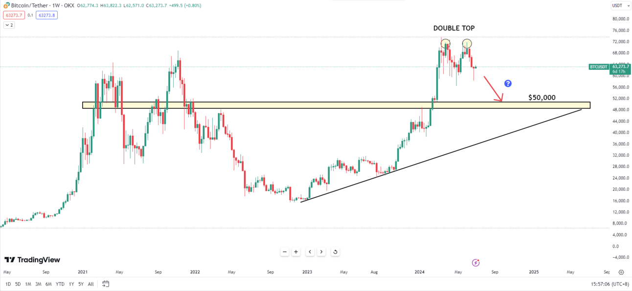 BTC double top паттерн үүсгэсэн байгаа нь