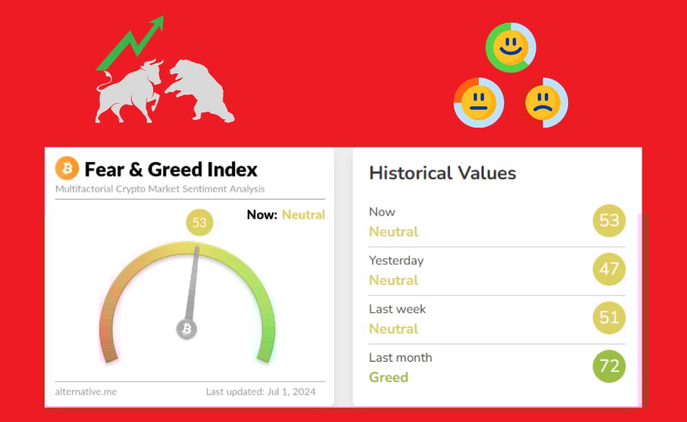 Крипто зах зээл дэх тоглогчдын сэтгэл зүйн байдал өнөөдрийн байдлаар Айдас ба шуналын индексийн дагуу 53 (Neutral) үзүүлэлттэй байна. Өнгөрсөн долоо хоногт энэ үзүүлэлт 51 (Neutral) байсантай харьцуулахад зах зээлийн сентимeнт бага зэрэг “bullish“ болсон байна.
