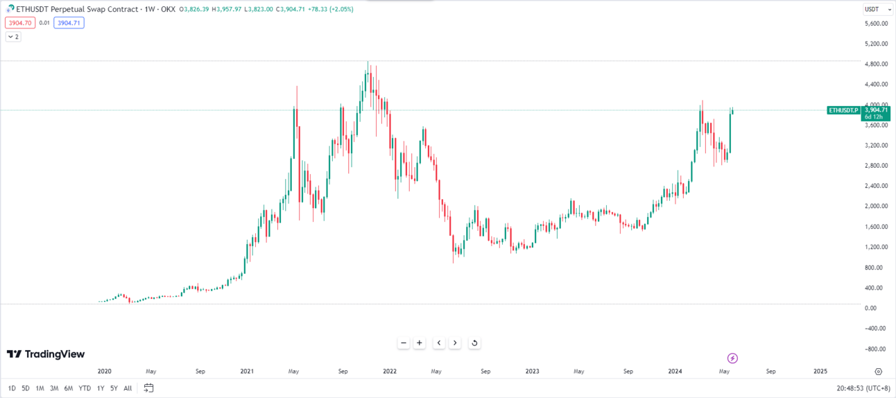 Сүүлийн 7 өдрийн байдлаар этэриумийн үнэ 26,45% өсөлттэй байна. Этэриумийн бүх цагийн үеийн дээд үнэ нь 4,878.26 ам.доллар байгаа бөгөөд үнэ 3,900 ам.долларын нийлүүлэлтийн бүс рүү дөхөж ирээд байна.