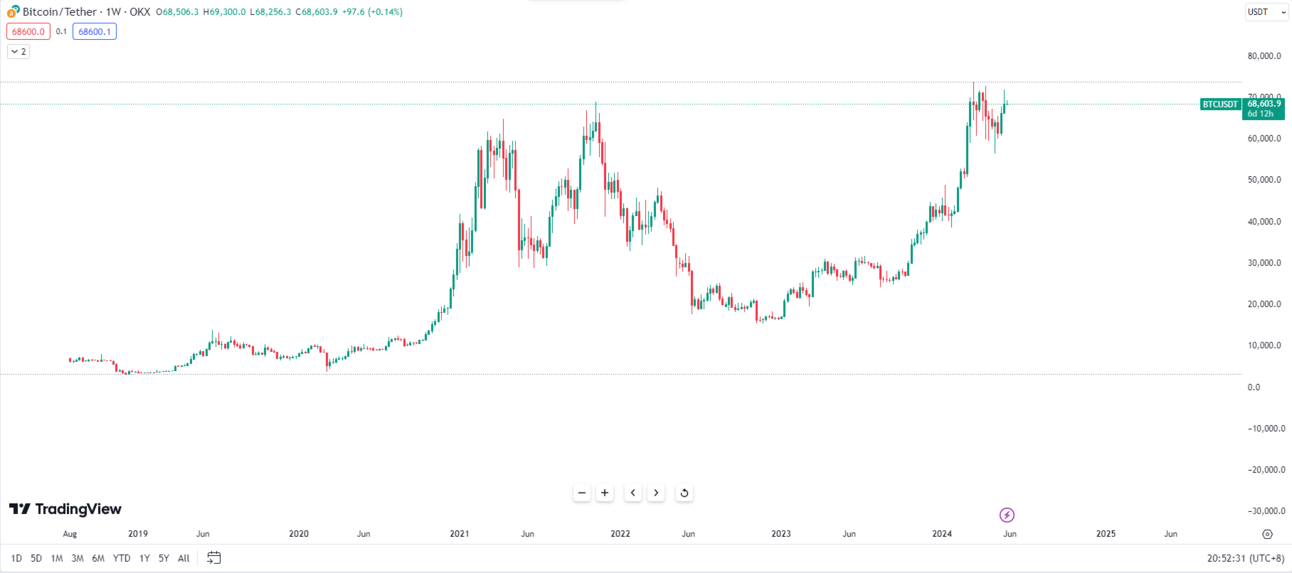 Биткойны хувьд өнгөрсөн Мягмар гарагт 71,960 ам.доллар хүртлээ өсөв. Энэ нь 4-р сарын 12-ны өдрөөс хойших үнэ 70,000 ам.долларыг анх удаагаа давсан тохиолдол болов. Сүүлийн 7 хоногийн байдлаар нэгж биткойны үнэ 2,42% өсөлттэй байна.