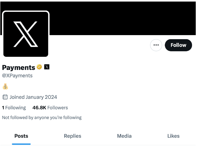 Өнгөрсөн Бямба гарагт X платформ өөрийн Payments аккаунтаа нээсэн байна. Гэхдээ тус аккаунт нь одоогоор ямар нэгэн пост оруулаагүй байгаа бөгөөд хуурамч биш жинхэнэ аккаунт болохыг илэрхийлсэн алтан болон X-ийн лого бүхий “badge”-уудтай ажээ.